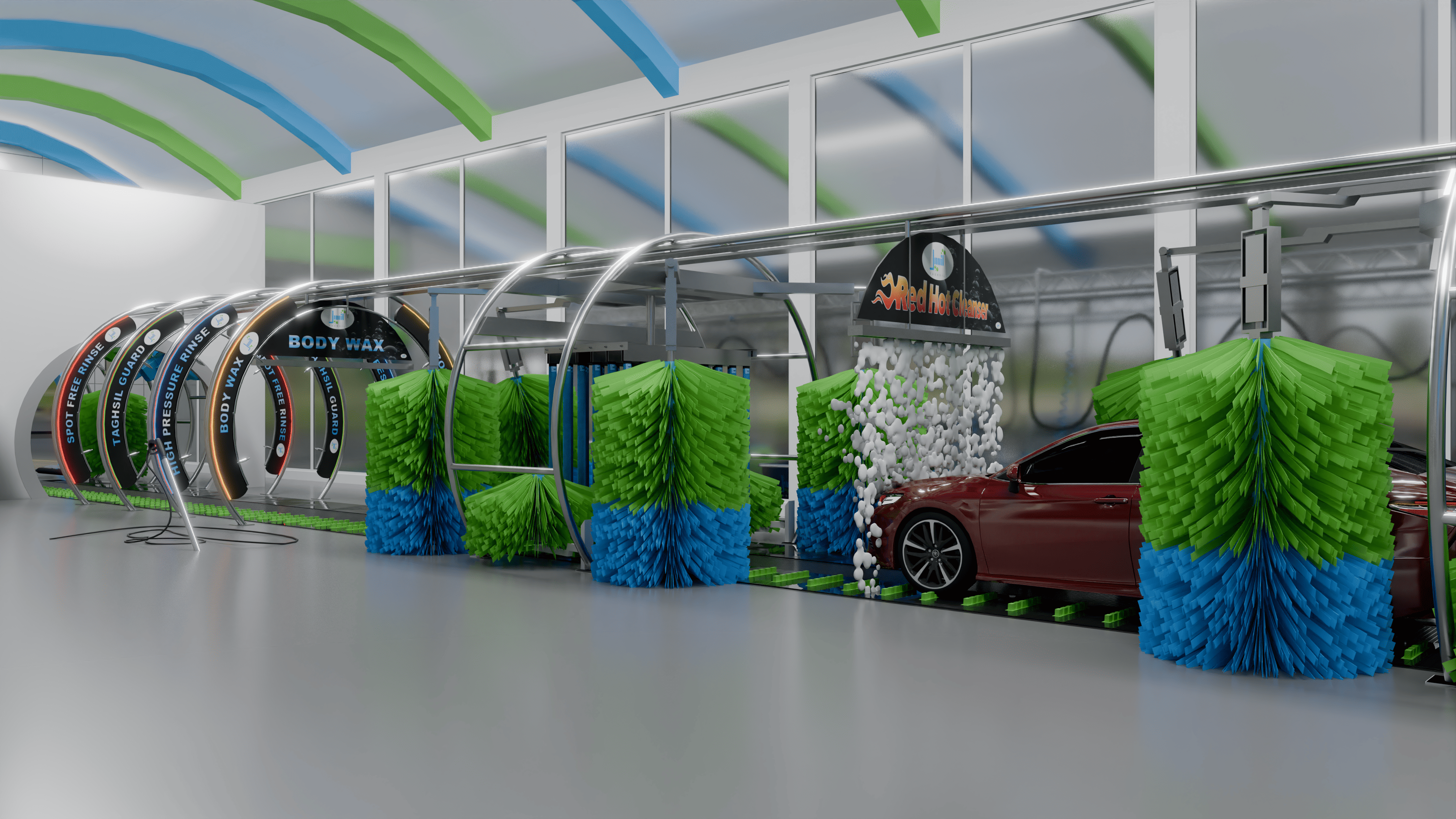 I created a 3D animation showcasing a modern car wash concept. The animation highlights the full customer journey from vehicle entry to the automated washing process, with realistic detailing, smooth camera movements, and dynamic lighting. The goal was to present the new American car wash technology in Dubai in a visually engaging and professional way, emphasizing both innovation and customer experience.